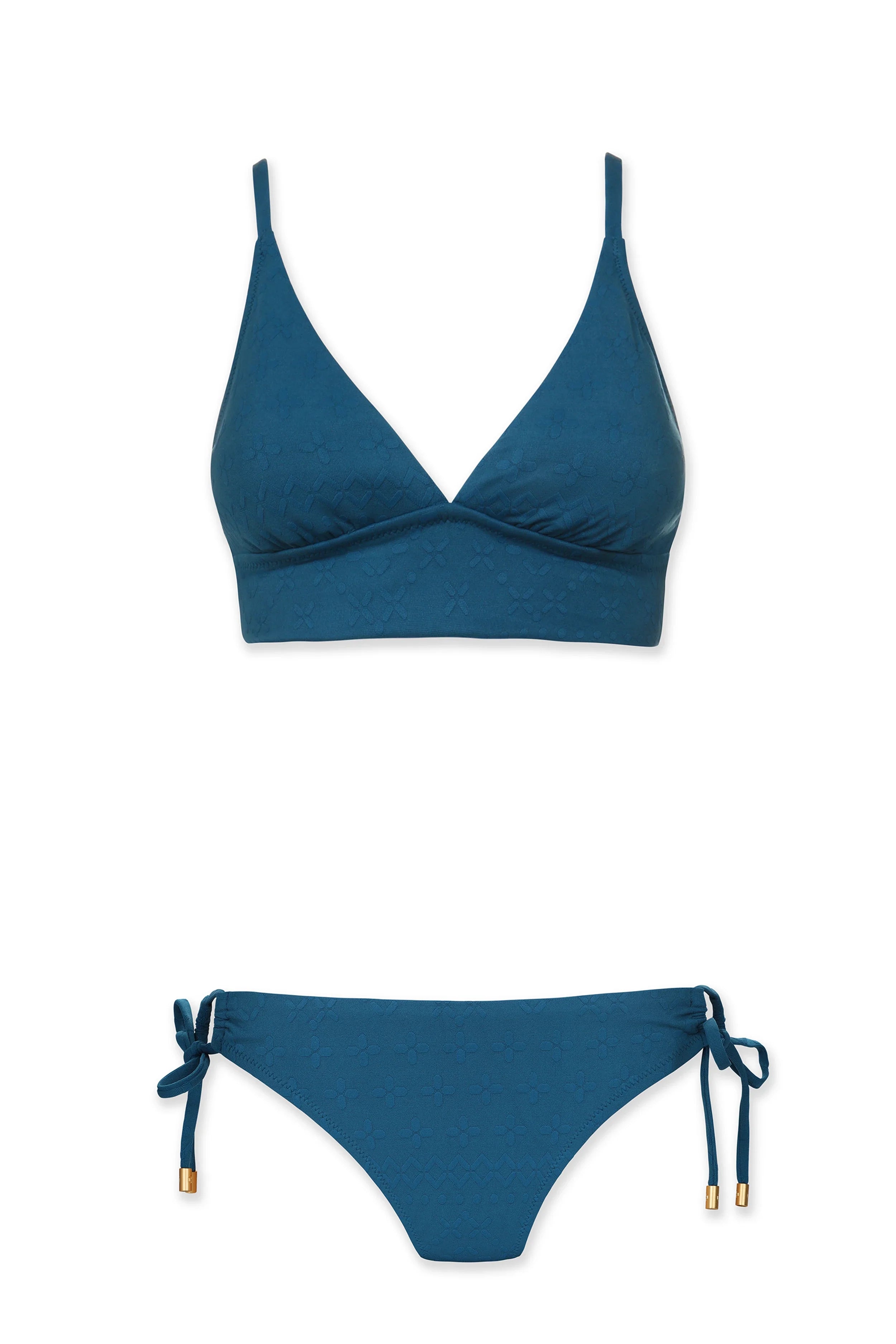 A modern bikini top with a supportive band and adjustable straps. Sleek and comfortable, it pairs perfectly with any bottom for a polished swim look.