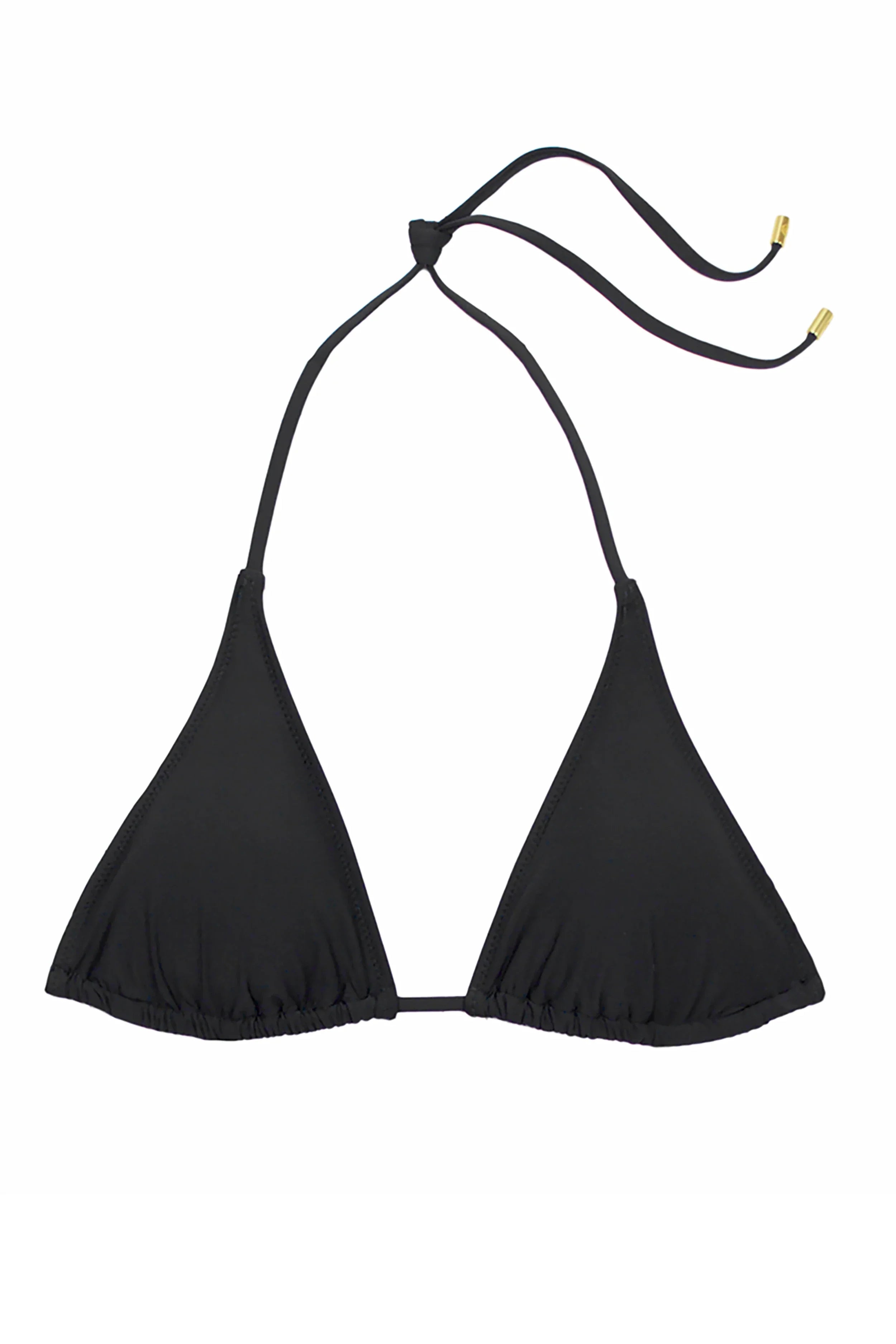Our classic string bikini top is both flirty and flattering. The matte gold end beads beautifully compliment the design and fit of the top. Very feminine.