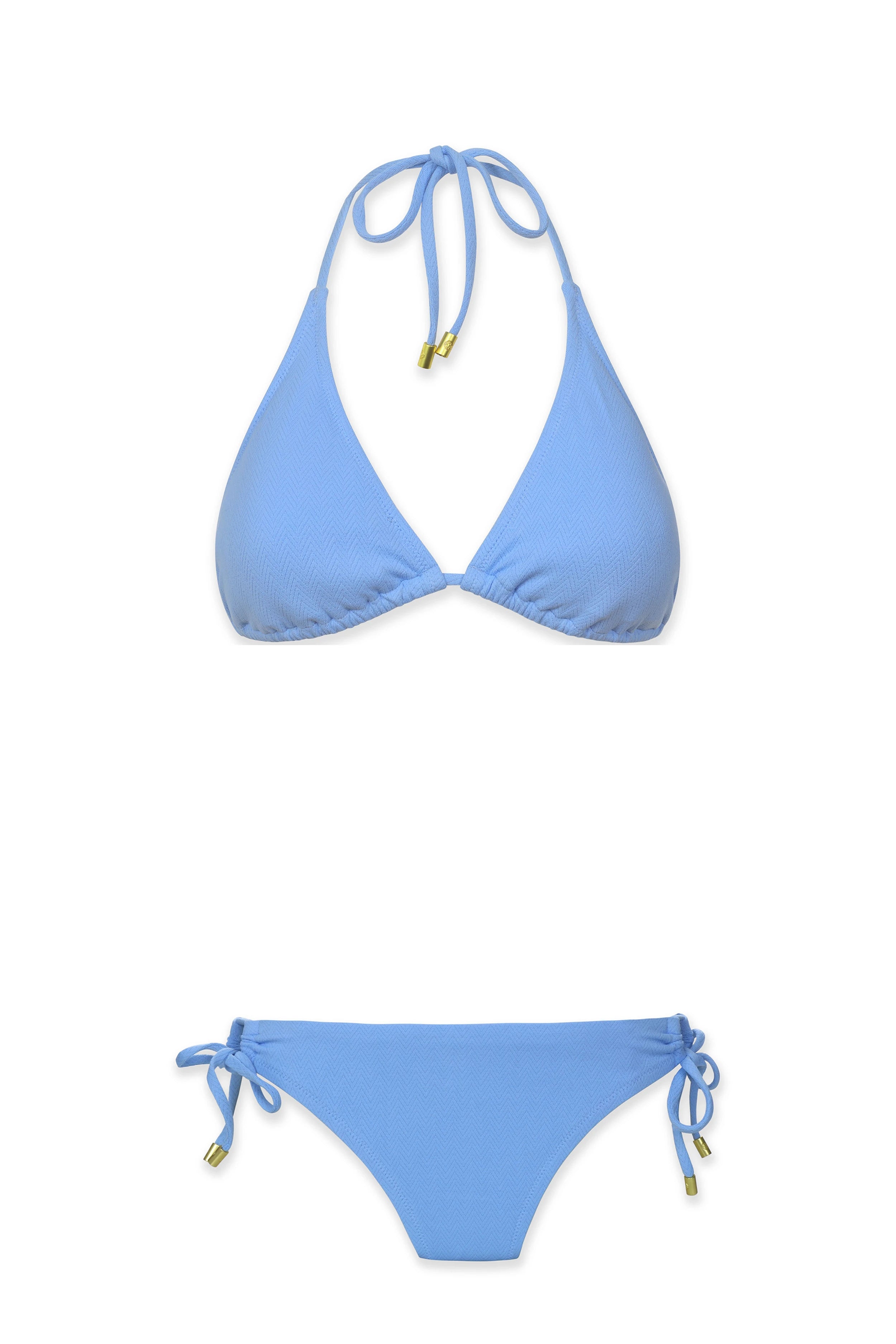 Our classic string bikini top is both flirty and flattering. The matte gold end beads beautifully compliment the design and fit of the top. Very feminine.