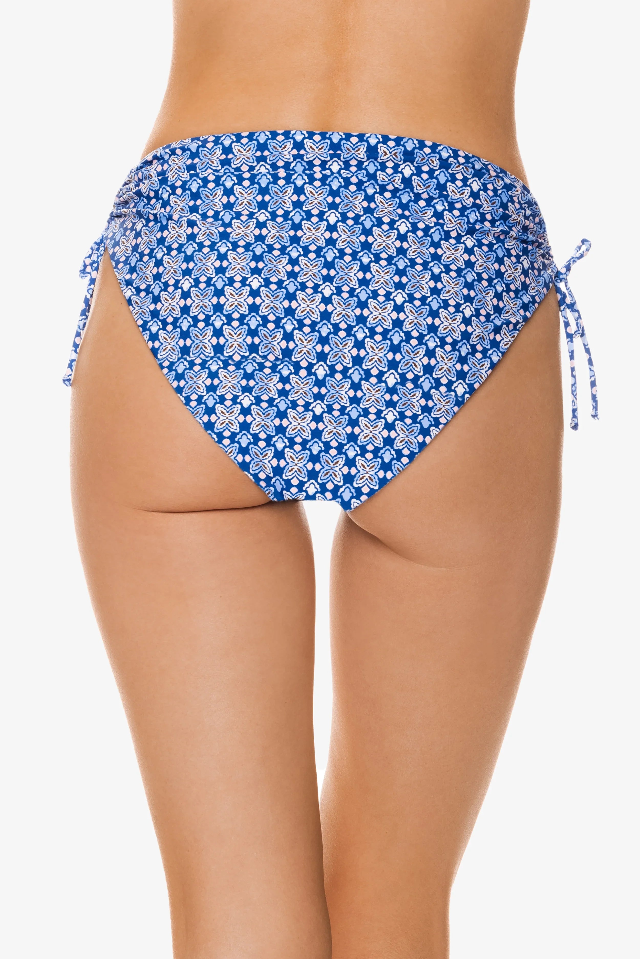 A high-waist bikini bottom with adjustable side cinches for a custom fit. This versatile style provides full coverage and a sleek, flattering silhouette.