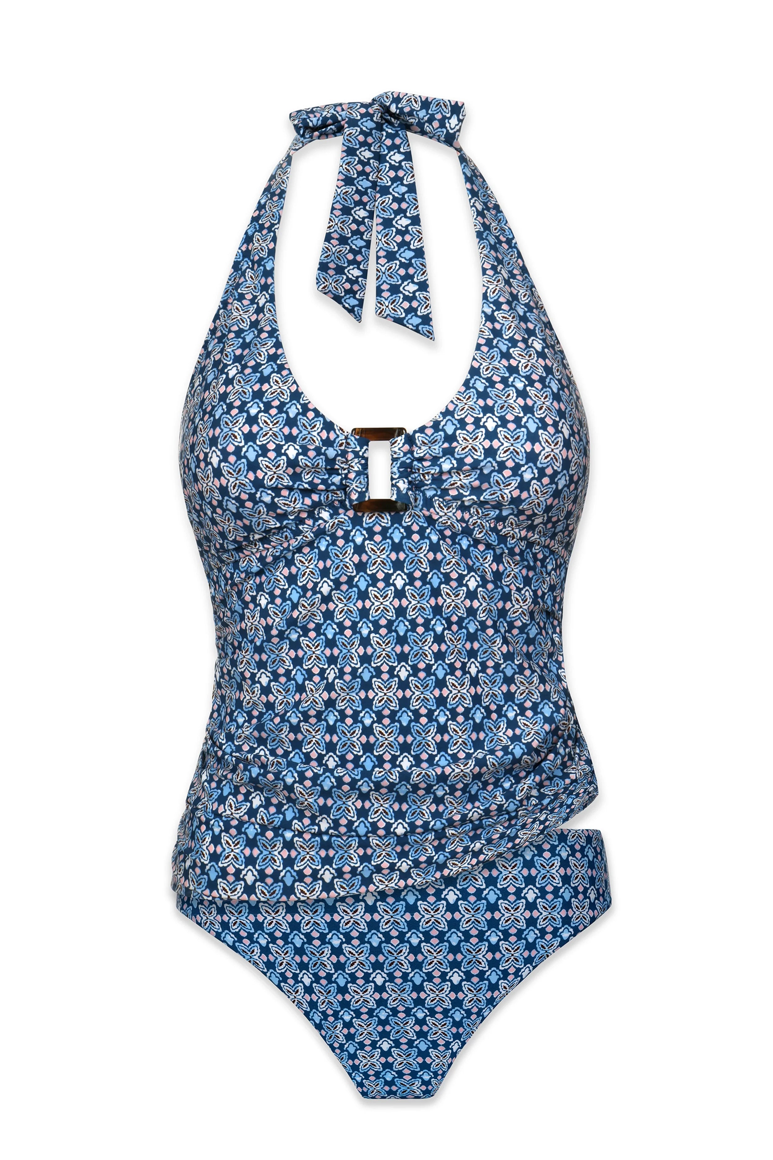 Dive into tranquil waters with Lagos�� marine blue print, blending boho-chic charm and sun-kissed Portuguese tile patterns. Dynamic yet graceful, it��s perfect for carefree summer days.