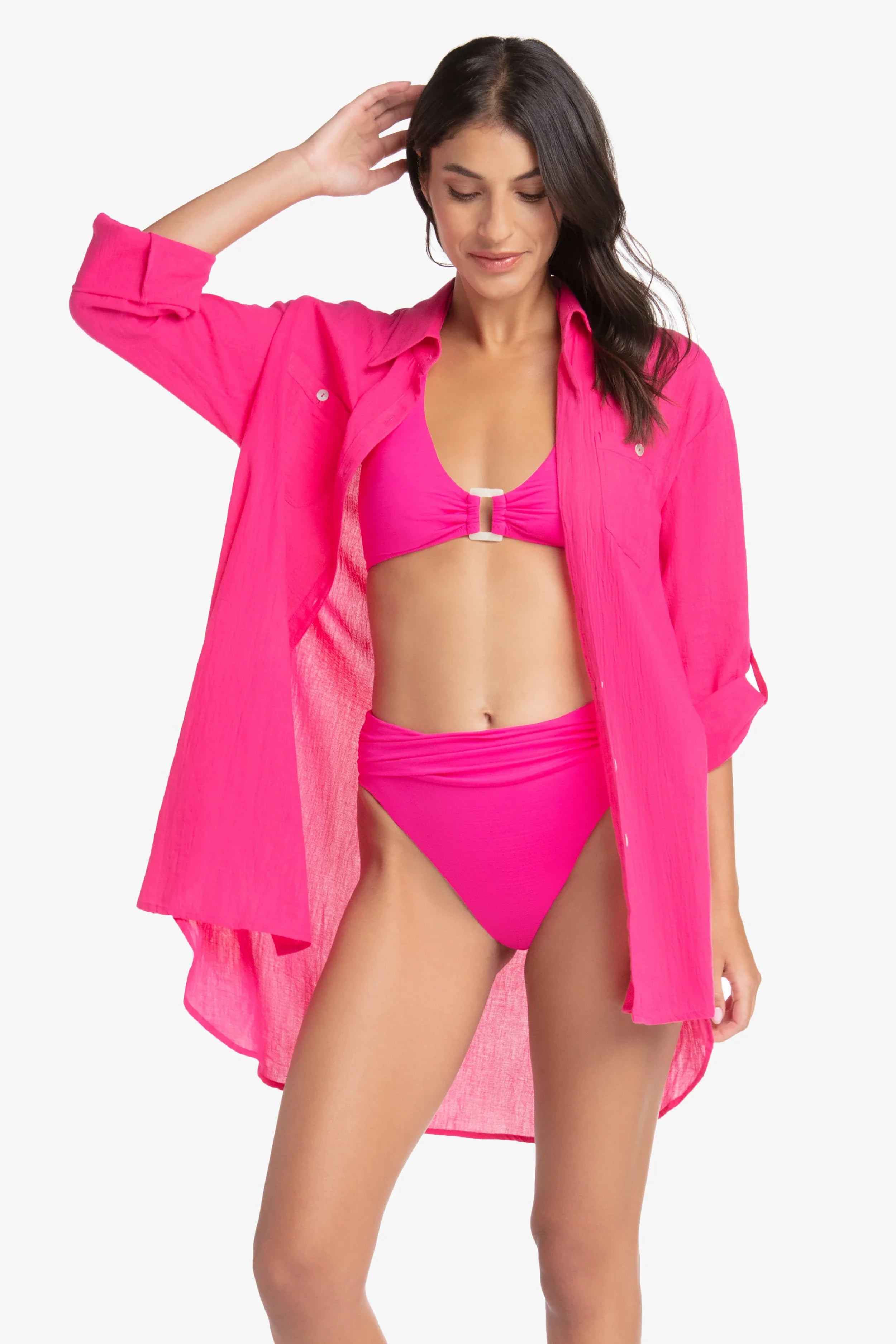 Stand out in vibrant lotus pink, inspired by blooming petals. With a textured finish, this solid brings confidence and elegance to poolside lounging or warm-weather adventures.