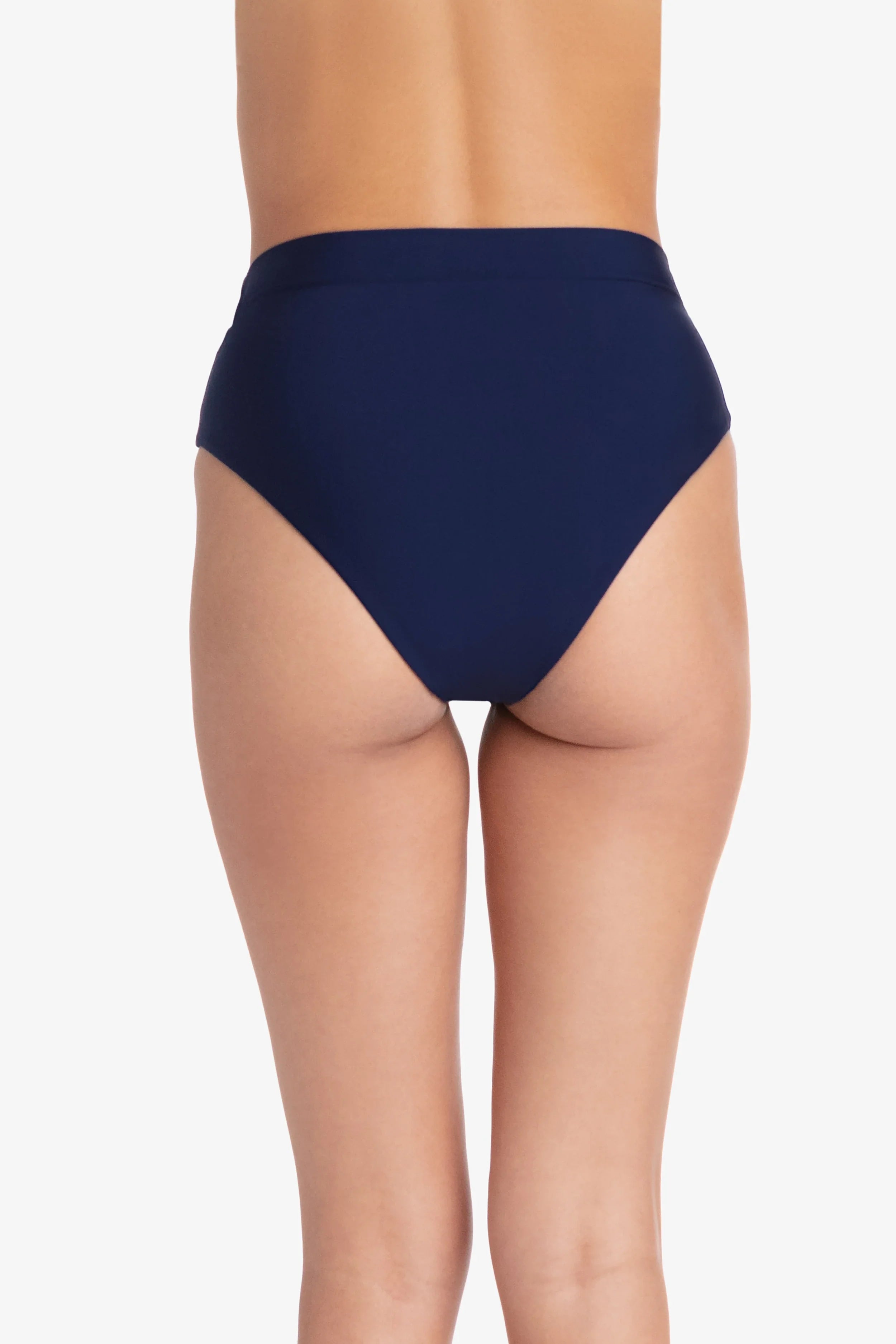 Tastefully cheeky and ever so chic, this soft band high waisted bottom features a high leg and extra tummy coverage. Super-flattering and comfortable��you��ll love it!