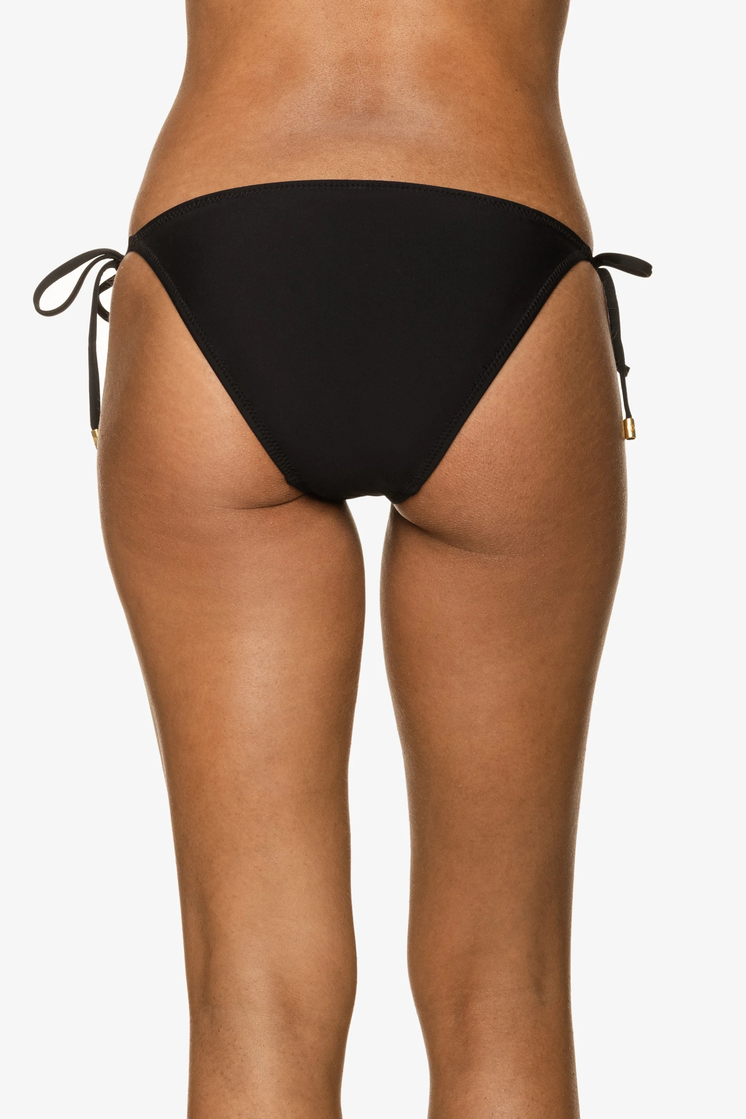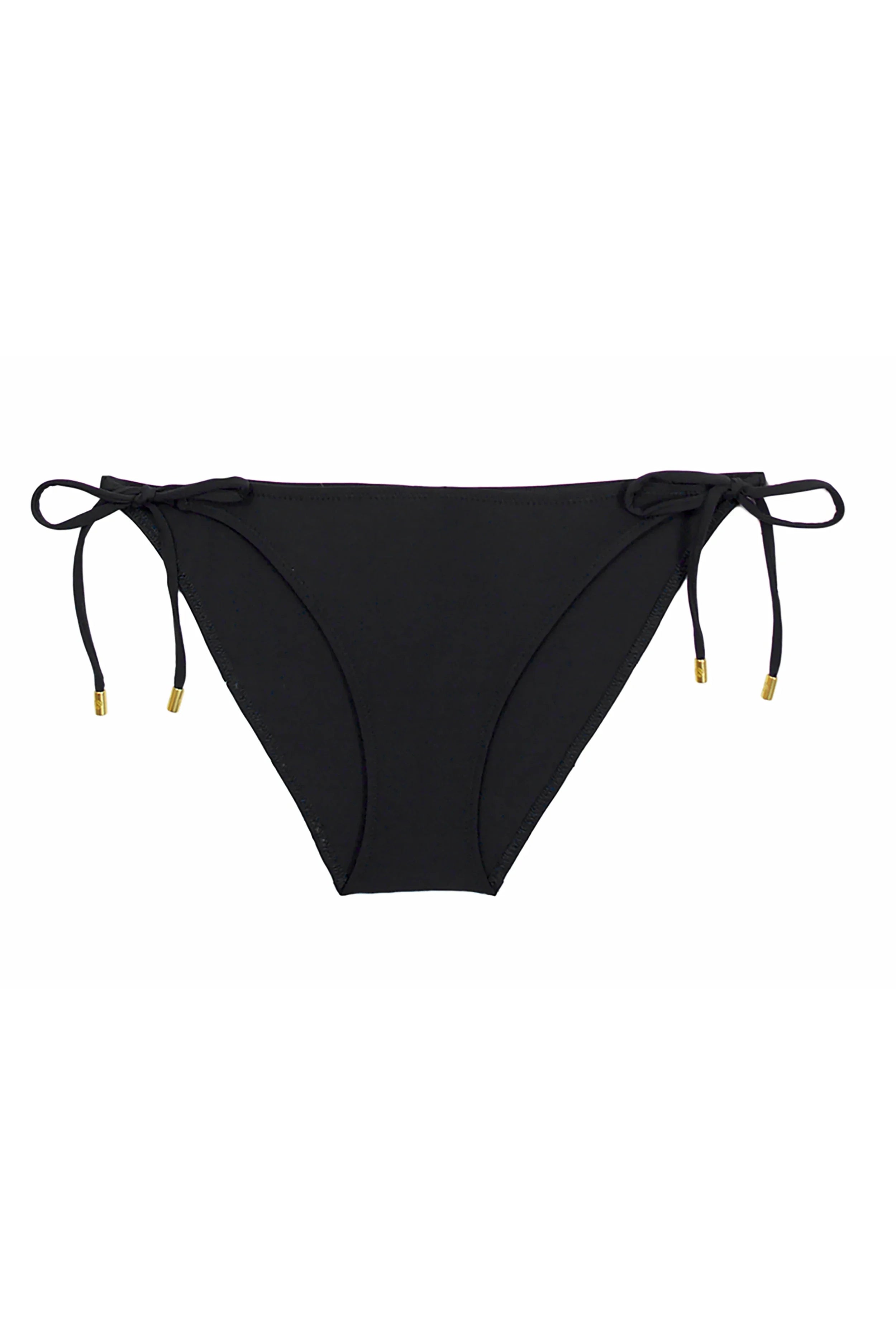 Sexy and flirty, yet elegant and refined. Our string bikini bottom sits slightly lower on your hips and features adjustable strings with lovely matte gold beads at each side.
