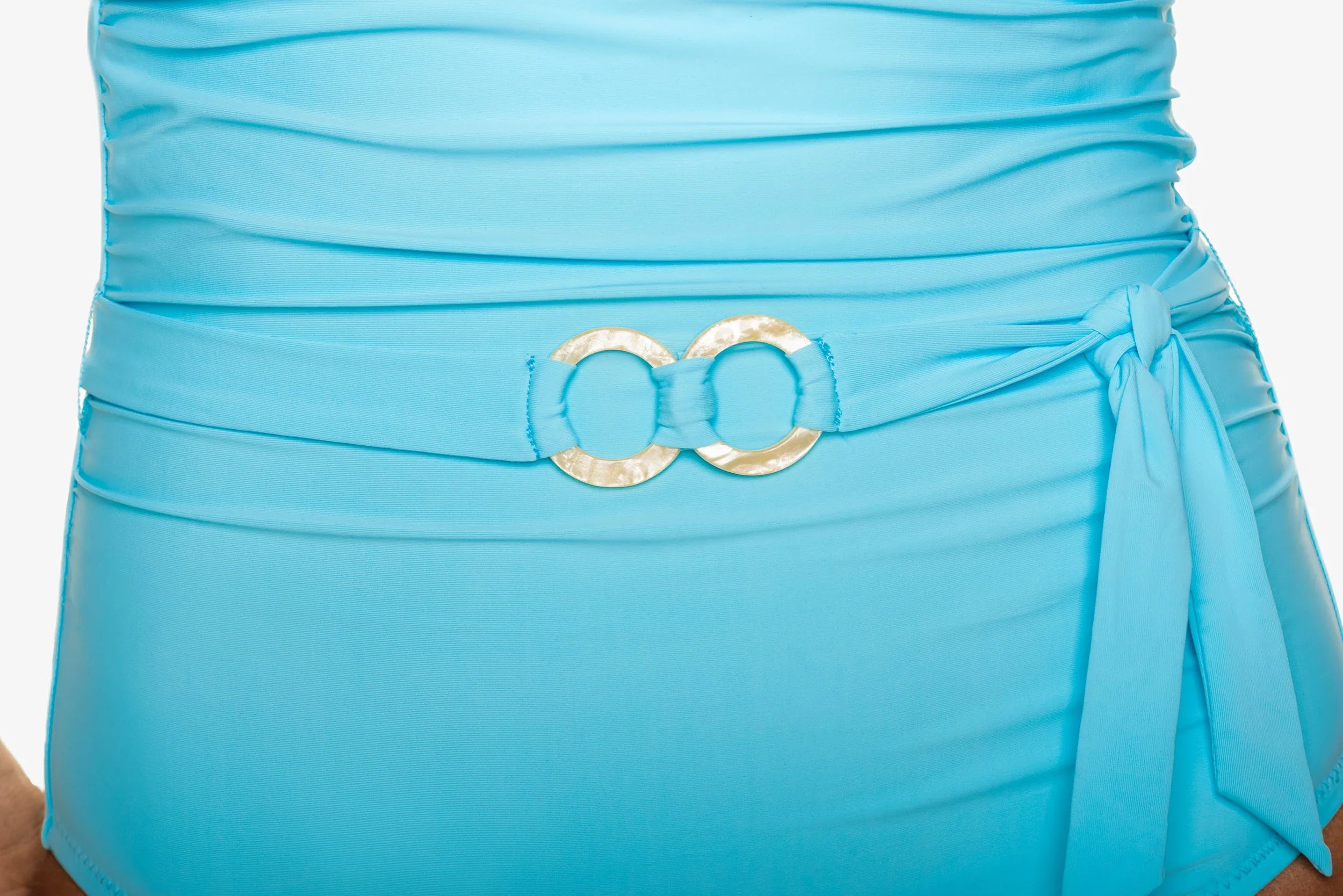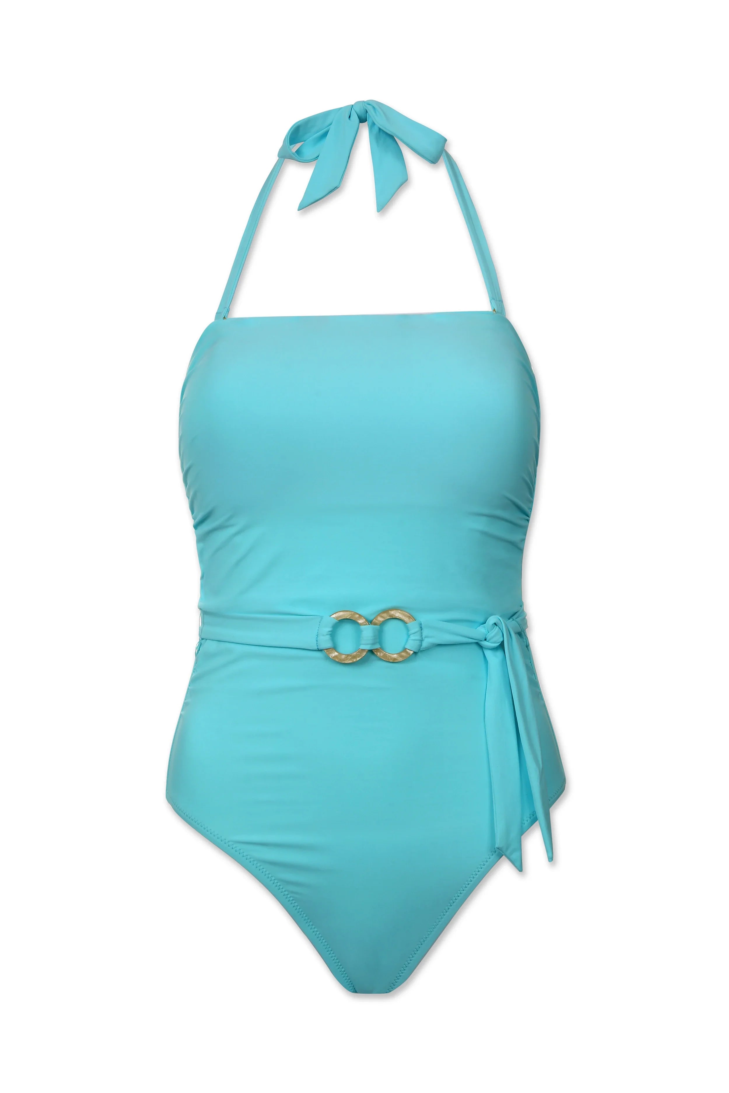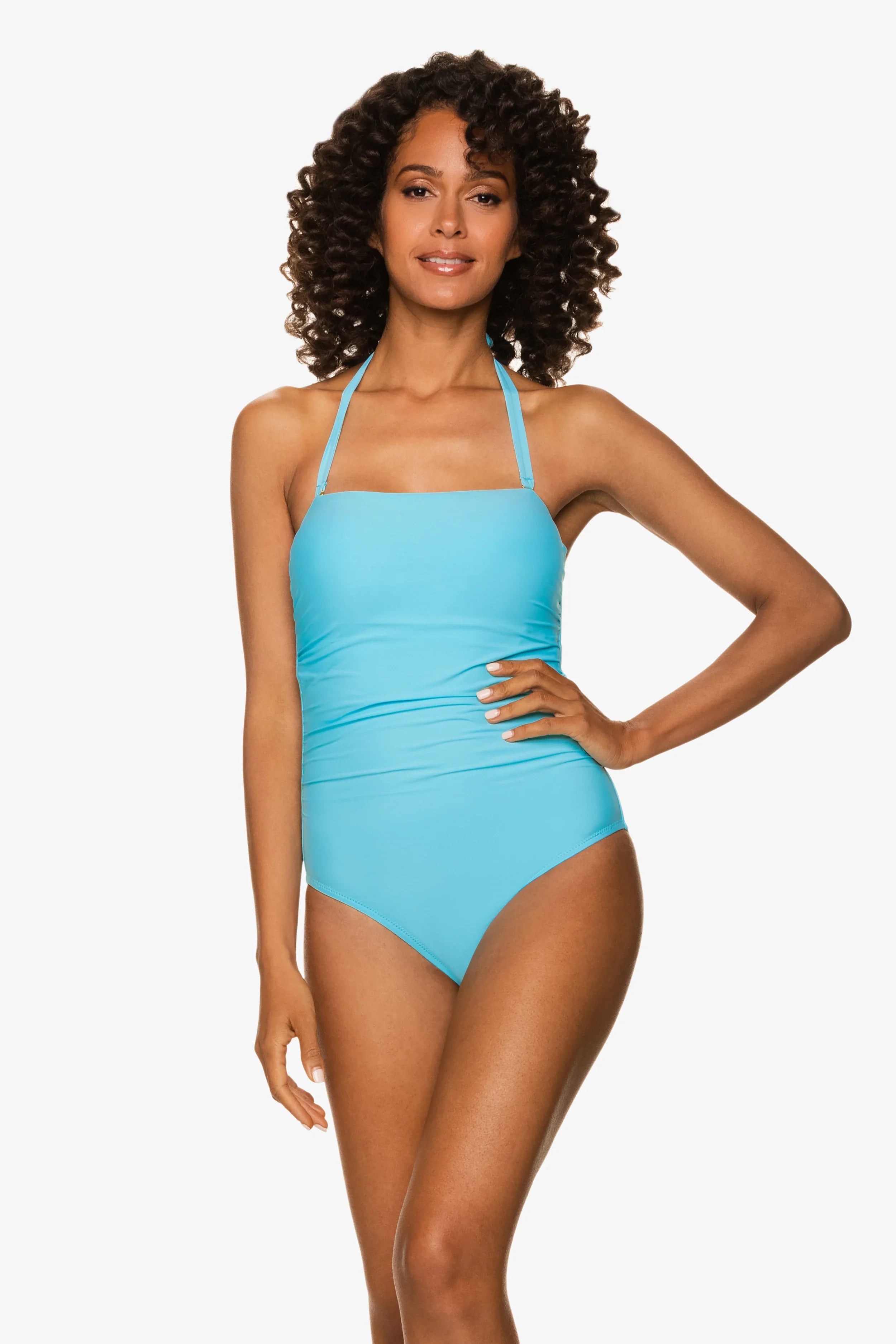 Trendy and flattering, our strapless one-piece suit will delight with its versatility and glamour. Features removable behind-the-neck straps for support and a soft-tie belt with tropical white faux-shell details to add extra luxury.