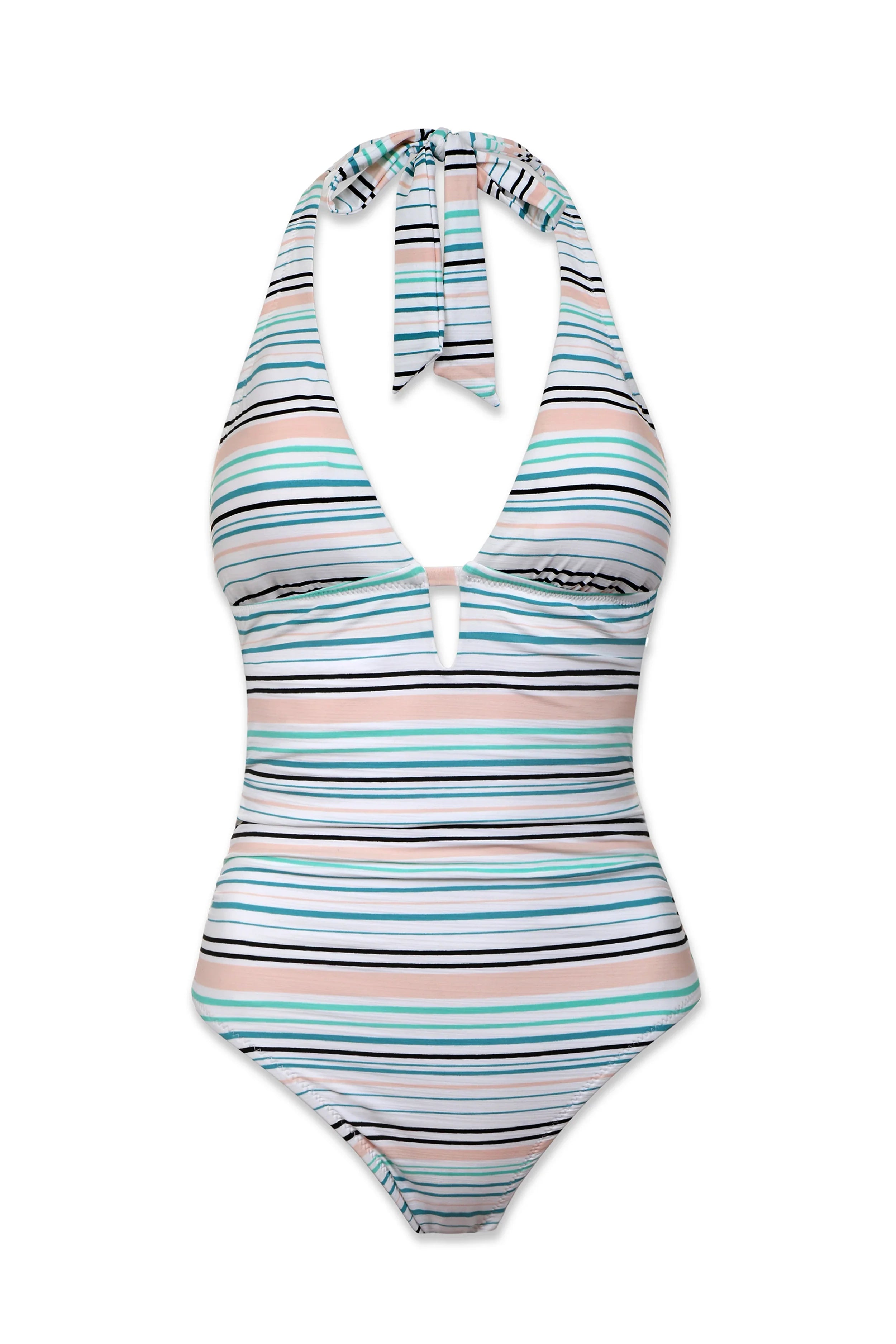 Anything but basic, this delicate Coastal Stripe print pairs perfectly with our black, mint, coastal blue or white solids, and provides understated glamour whether you're lounging poolside or strolling along the beach.