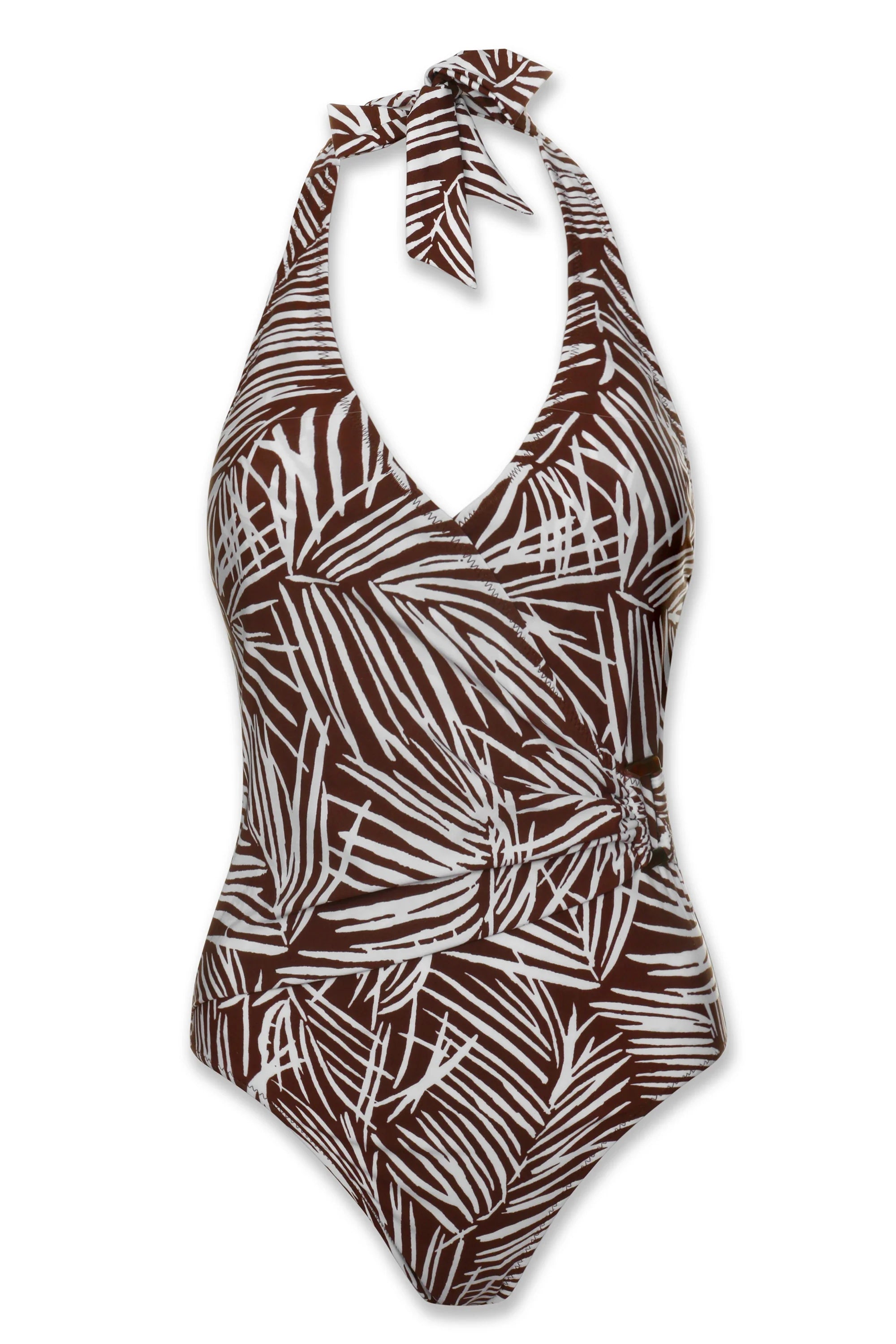 Make a vacation statement in this glamorous one-piece swimsuit. The ultra-flattering wrap overlay has our signature shell hardware buckle for a beautiful and comfortable fit.