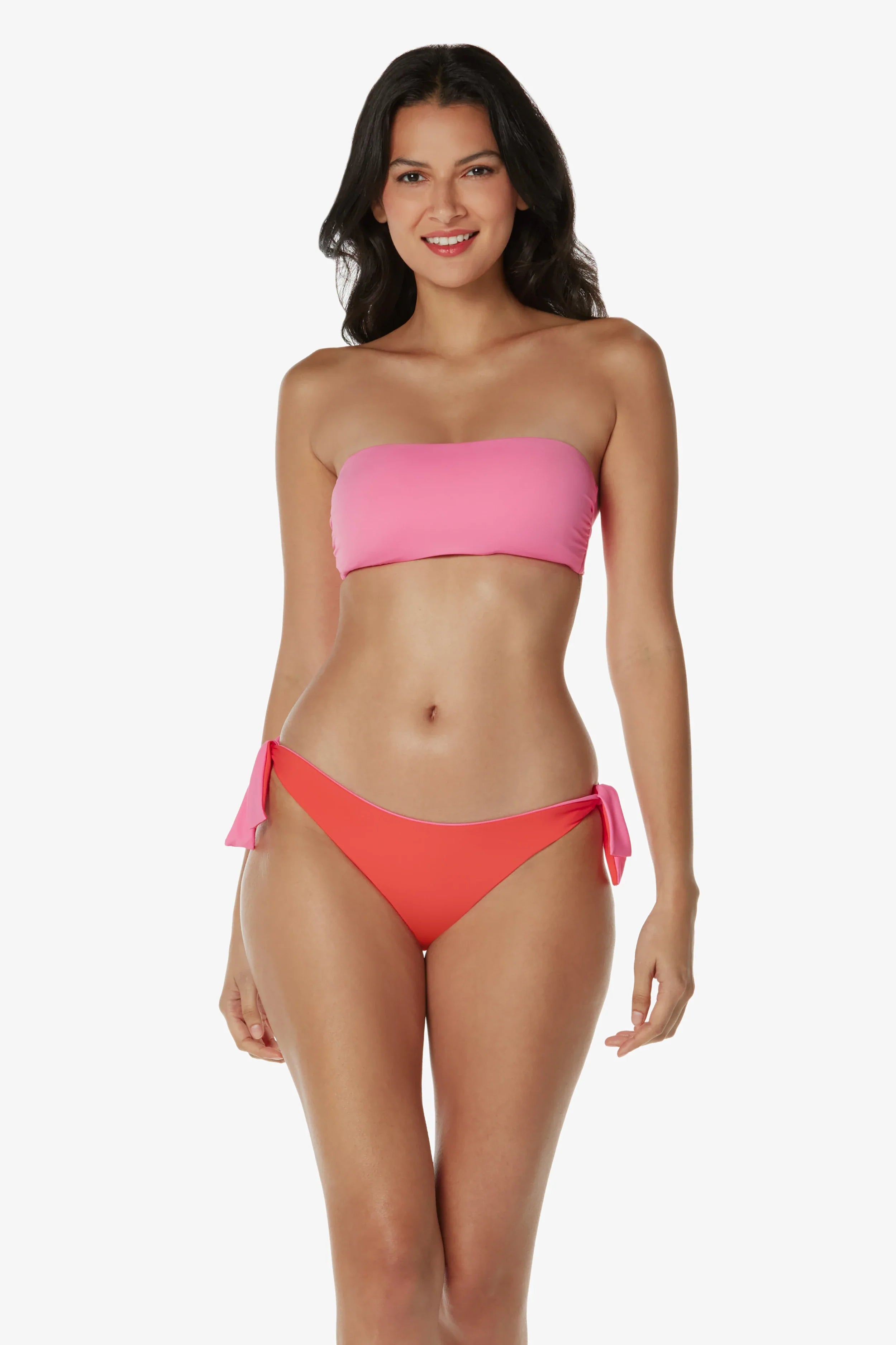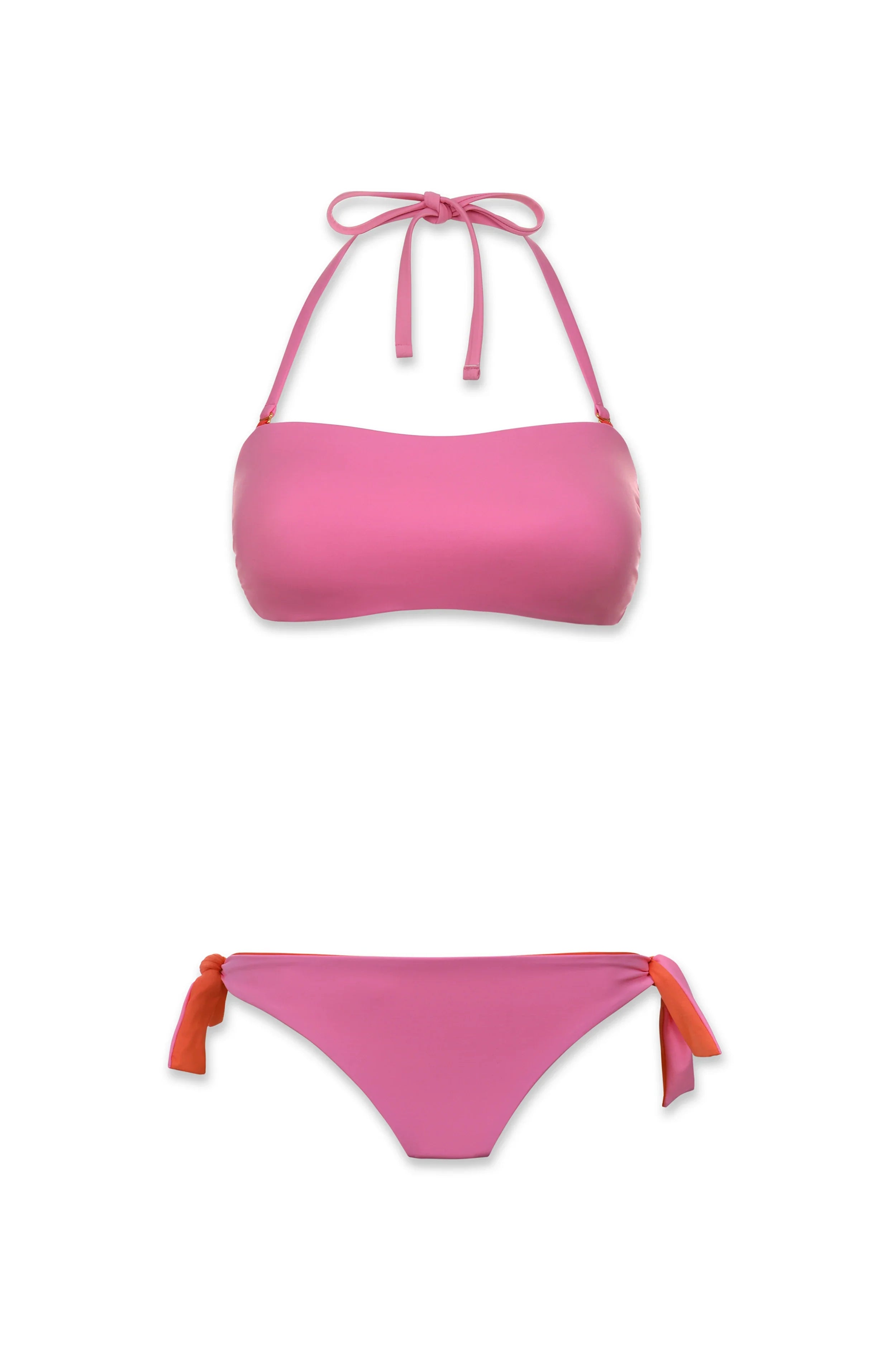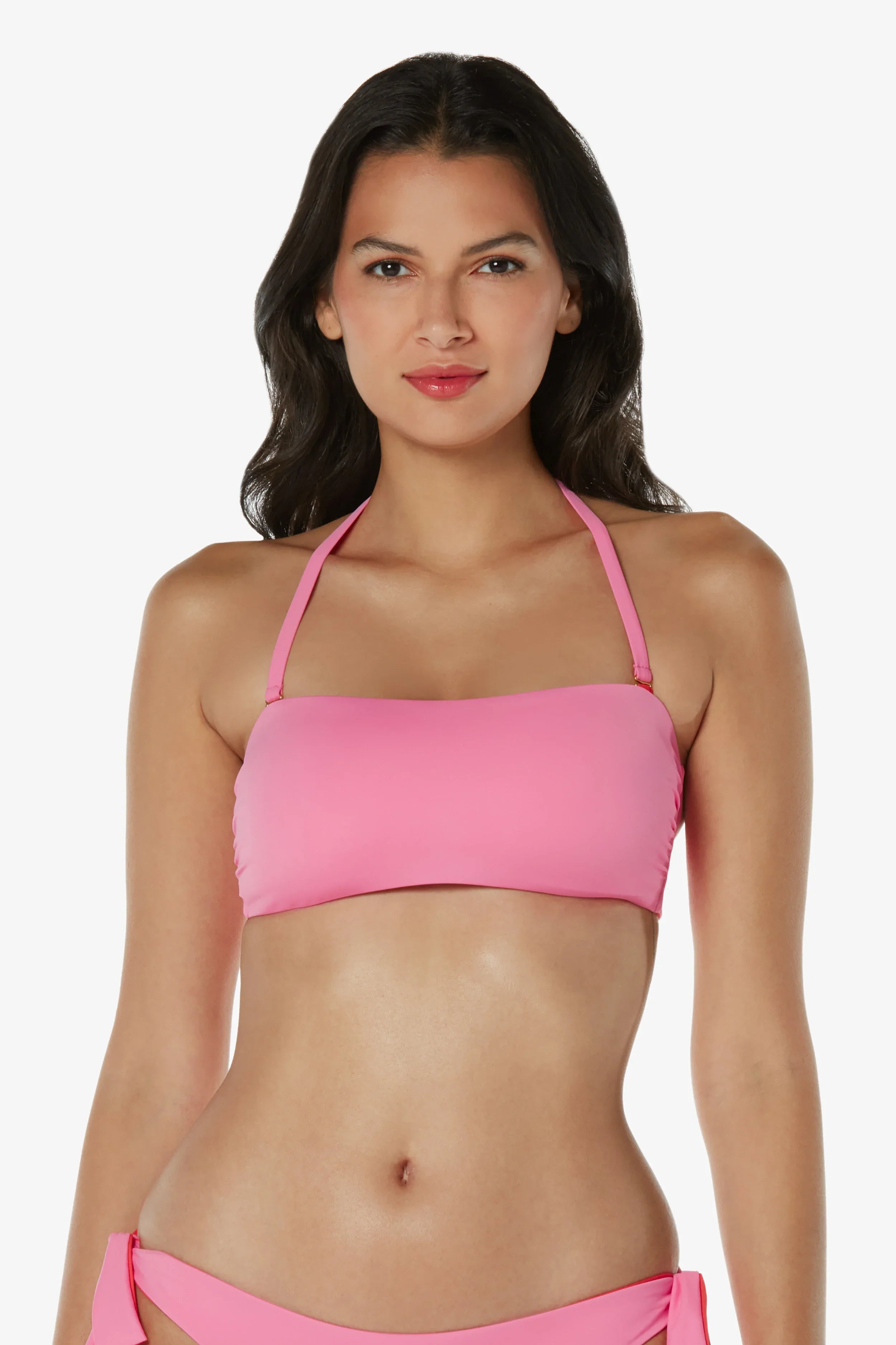 Indulge yourself with this sultry bandeau top. The two-toned tie back adds a flirty detail and detachable neck straps allow for versatile styling, ensuring you radiate confidence at the beach or pool.
