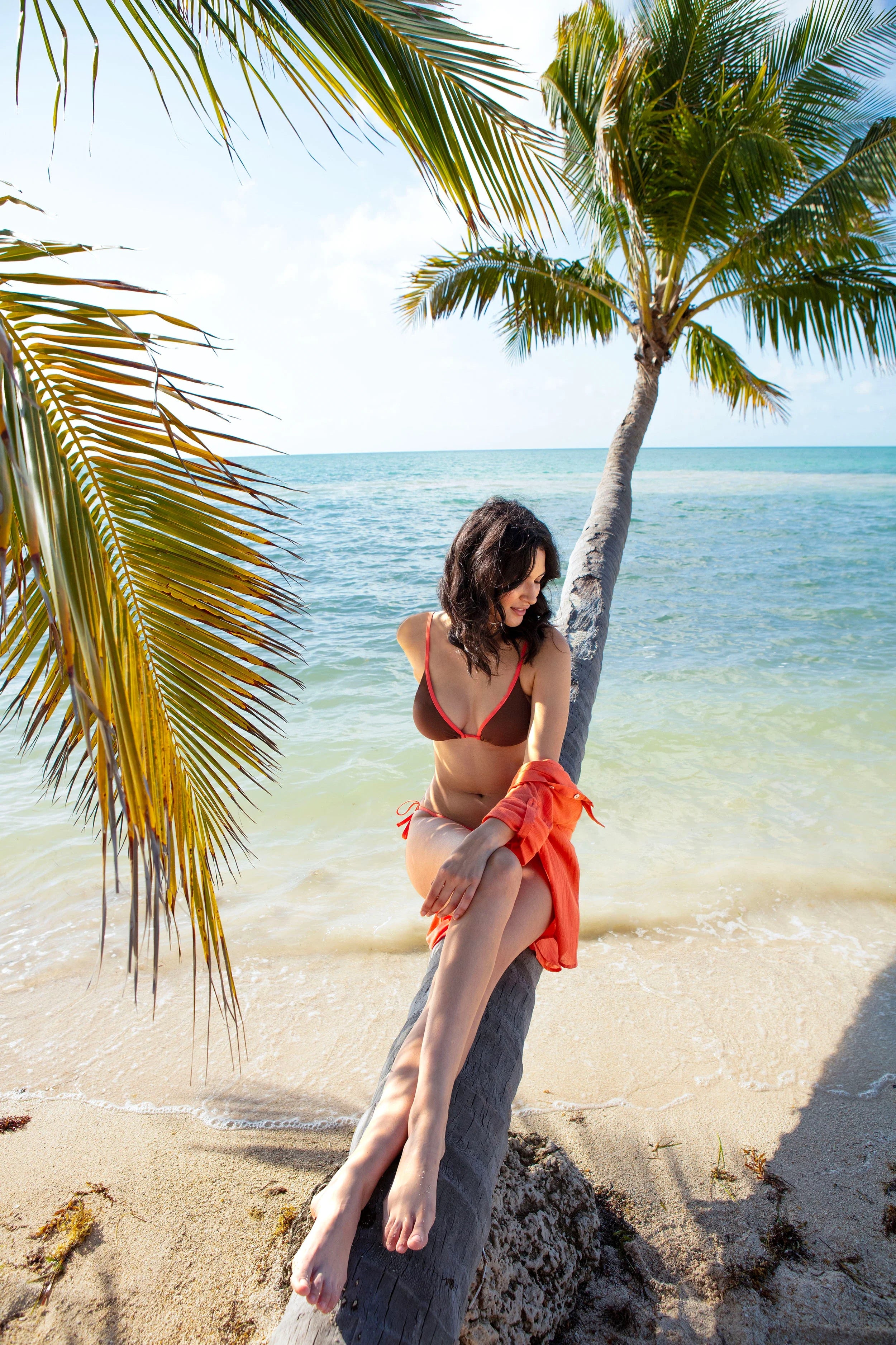 Like palm trunks swaying beneath tropical skies, textured chocolate brown flows freely, accented by a pop of coral. Earthy and exotic, it moves with you from sunlit decks to starlit dining.