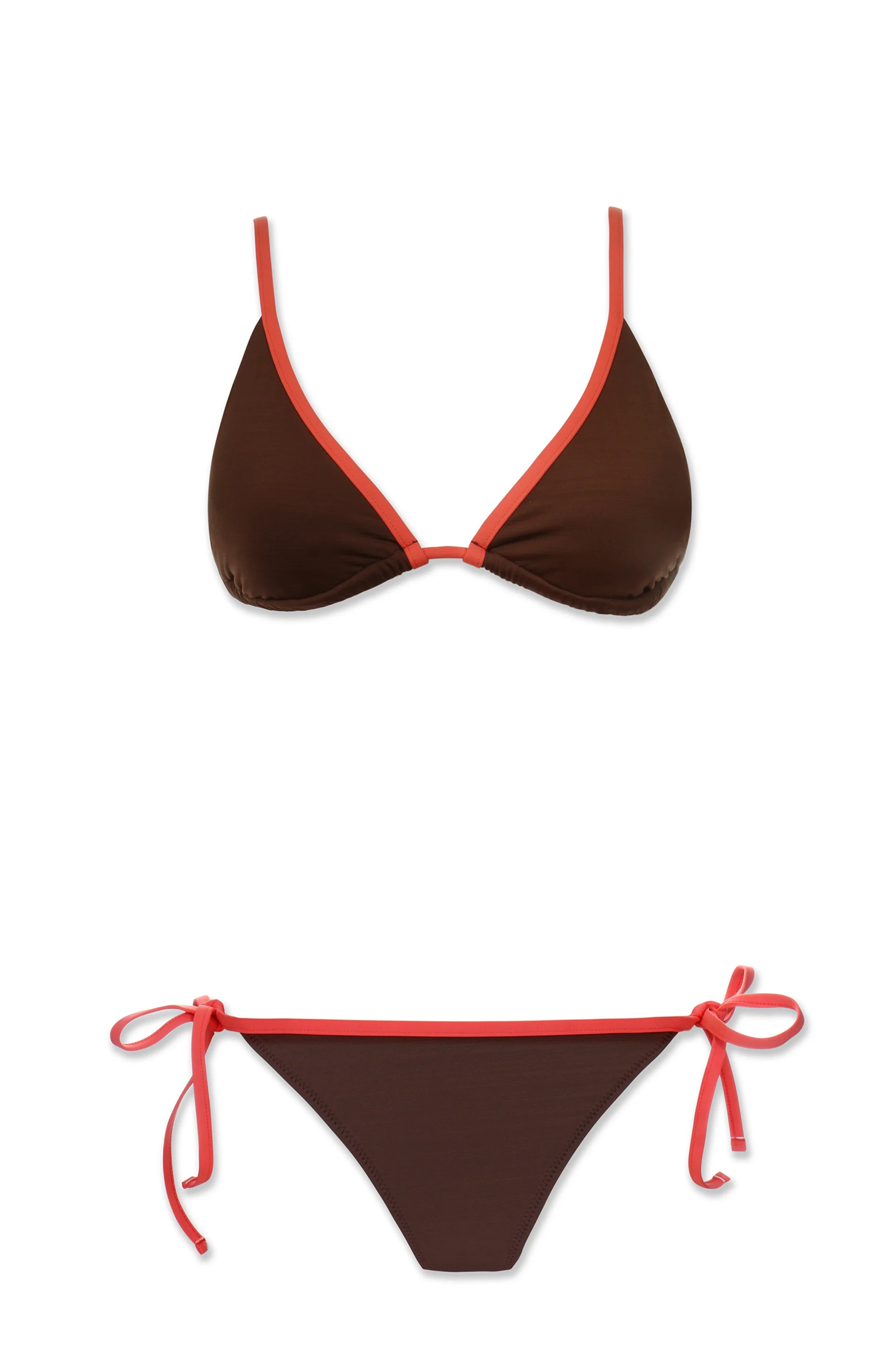 Chic over-the-shoulder triangle string bikini top featuring eye-catching contrasting trim. The thin straps are both stylish and adjustable, elevating the modern beach look with a touch of flair.