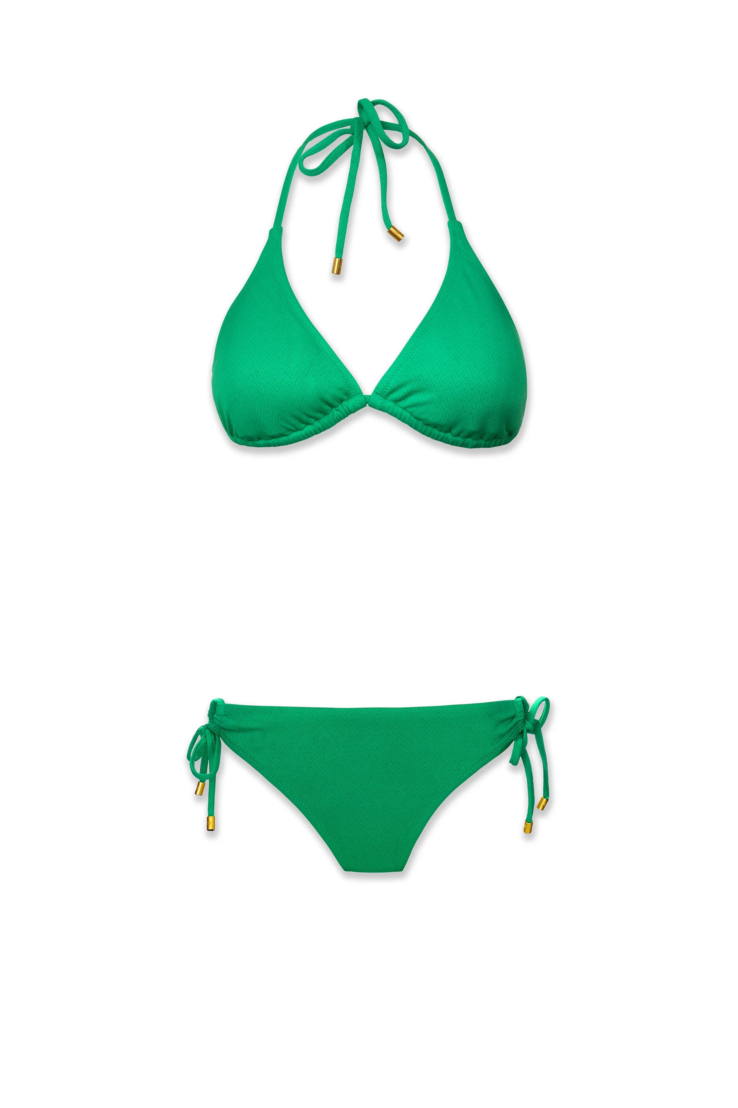 Our classic string bikini top is both flirty and flattering. The matte gold end beads beautifully compliment the design and fit of the top. Very feminine.