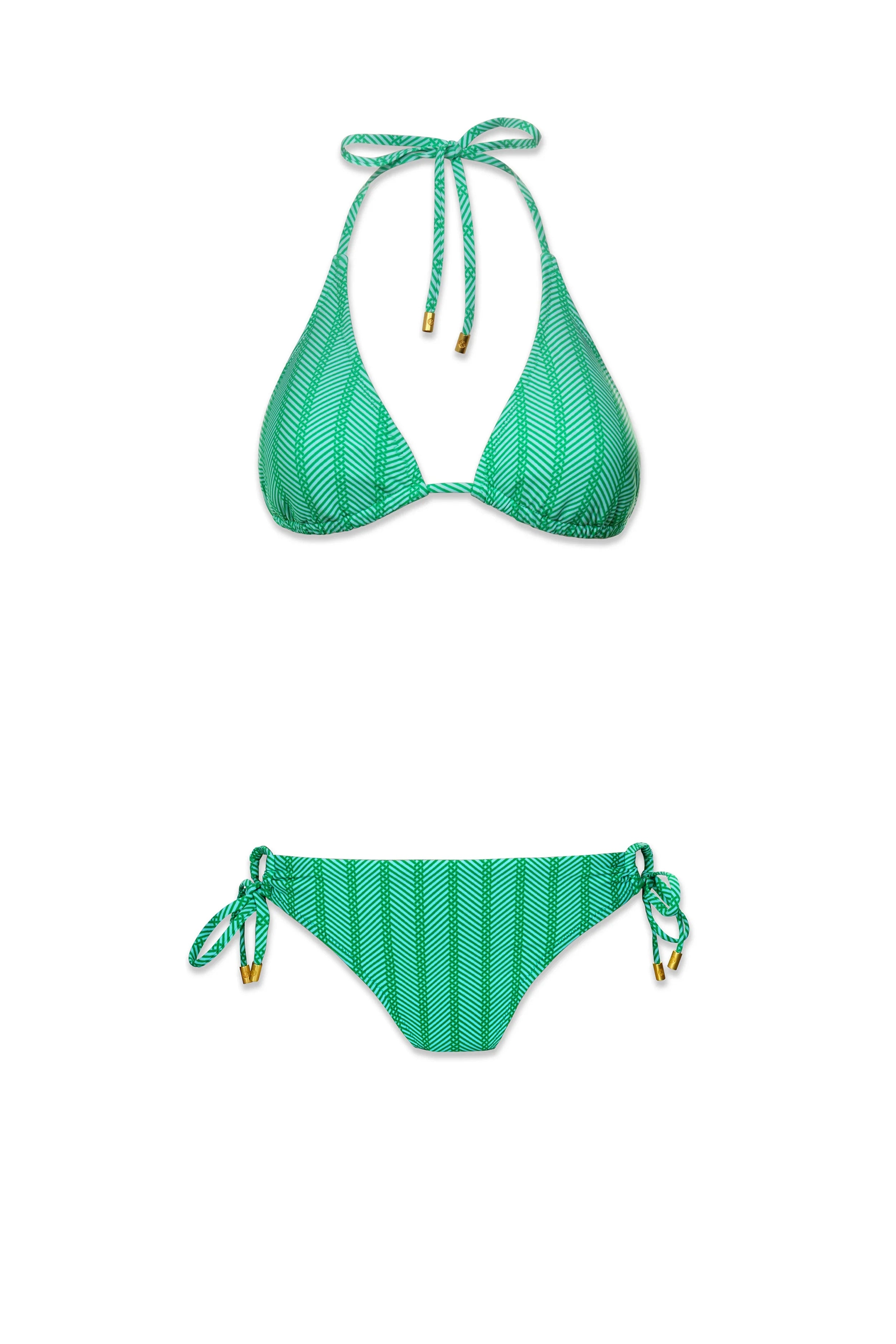 Our classic string bikini top is both flirty and flattering. The matte gold end beads beautifully compliment the design and fit of the top. Very feminine.